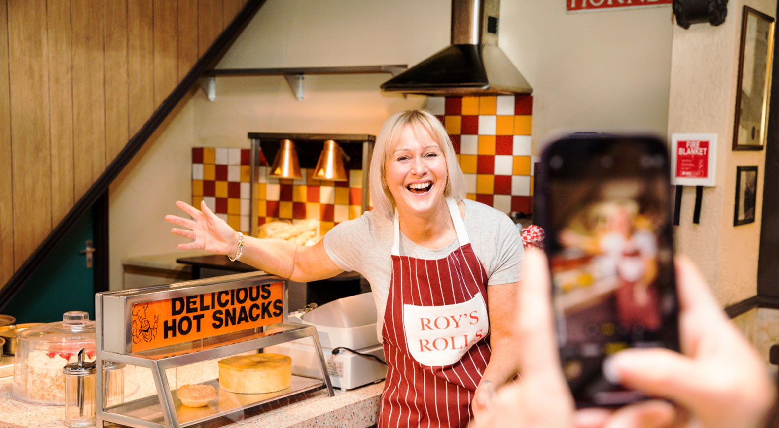 Indulge in the ultimate Coronation Street Experience by sitting in a replica Roy’s Rolls café. Immerse yourself in the ambiance, capture unforgettable photos, and savour the atmosphere of this beloved local hangout. Step through the doors of our meticulously crafted replica, and let the inviting ambiance envelop you. Take in familiar sights and sounds that have become a part of Corrie folklore, every detail has been recreated to perfection.